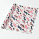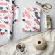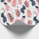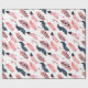 Lovely watercolor digital art pattern wrapping paper features a collection of Boho style feathers in pinks and black