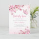 Boho Pink Floral Butterfly Kisses Girl Baby Shower Invitation