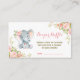 Boho Pink Floral Elephant Diaper Raffle Ticket Enclosure Card