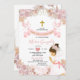 Boho Pink Floral Girl First Holy Communion Invitation