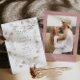 Bohemian-style whimsical wildflower frame invitation with elegant and simple dusty pink florals and sage green botanicals in hand-printed watercolor. The back of the invitation, including the dusty pink background and photos, is perfect for boho weddings and rustic weddings. Editable invitations for spring, summer, fall (autumn), and winter weddings.