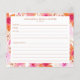 Boho Pink Orange Flowers Bridal Shower Recipe Card