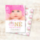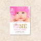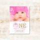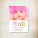 Boho Pink Pumpkin Fall 1st Birthday Girl Photo Invitation