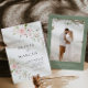 Boho Blush Pink Rose Floral Sage Green Botanical Elegant Minimalist Wedding Invitation.