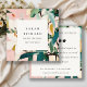 Boho Pink Teal Green Painted Floral Review Request Square Business Card