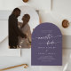 This boho plum purple photo arch Spanish wedding invitation is perfect for a minimalist wedding. The moody dark purple jewel tone modern bohemian design features simple rustic calligraphy with a unique yet classic style.