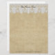 NOTE: this is a flat printed design, there are no raised lace, fabric or layered elements on this product. COLOR PALETTE: white, tan, burlap DESIGN COLLECTION: Matching Matching Bridal Stationery or Business Letter Head, letterhead. This is a modern BOHO or Bohemian Style, gypsy inspired, trendy chic stylish look. It has a simple, clean yet lovely beauty. Created from vintage Victorian or Edwardian era swirl baroque deep drop leaf lace pattern and tear drop design ornaments that have been graphically hand transformed into an elegant beautiful, sophisticated lace trim border. The laces are laid on top of a tea stained burlap textured background pattern. A complete wedding invitation set is available to match. The reverse side has the tear drop, diamond swirl point lace pattern in a full repeat pattern.