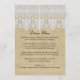 NOTE: this is a flat printed design, there are no raised lace, fabric or layered elements on this product. COLOR PALETTE: white, tan, burlap DESIGN COLLECTION: Matching Reception or Bridal Shower Dinner Menu with entree choices. This is a modern BOHO or Bohemian Style, gypsy inspired, trendy chic stylish look. It has a simple, clean yet lovely beauty. Created from vintage Victorian or Edwardian era swirl baroque deep drop leaf lace pattern and tear drop design ornaments that have been graphically hand transformed into an elegant beautiful, sophisticated lace trim border. The laces are laid on top of a tea stained burlap textured background pattern. A complete wedding invitation set is available to match. The reverse side has the tear drop, diamond swirl point lace pattern in a full repeat pattern.