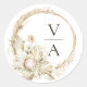 Boho Protea Pampas Grass Wreath Wedding Monogram Classic Round Sticker