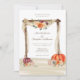 Boho Pumpkins Fall Wedding Invitation. Boho Wedding Canopy beach arbor Fall Pumpkins Harvest Florals Invitation. Bohemian style Wedding Canopy with cloth draping surrounded by Autumn Pumpkins and fall harvest Florals.