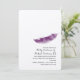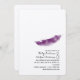 A bohemian inspired wedding invitation featuring a watercolor inspired illustration of a purple feather. Personalise the text.