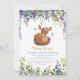 Beautiful Watercolor Purple floral Baby Shower invitations. Features a spray of purple, green and gold faux glitter flowers and vines, butterflies and a baby deer in a basket. Great for a boy or girl!
