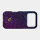 Boho Purple Floral Gold Monogram Phone Case. Monogram is an elegant gold serif font and your name is a white sans serif font.