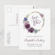 Boho Purple Floral Wreath Blank Save the Date Postcard