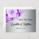 This unique wedding save the date card features a shimmering silver background, the perfect canvas for a captivating twist on tradition: a single, exquisite bunch of purple roses nestled in the top left corner. Personalise with your names and date, ensuring your loved ones mark your special day. Printed on premium paper, this card feels as luxurious as it looks. More than just a notification, it's a glimpse into the refined grace of your wedding celebration. Whether you're planning a very formal affair or a more relaxed, casual day, this gorgeous silver and purple botanical theme will fit right in.