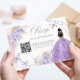 Boho Purple Silver Floral Butterfly Quinceañera QR RSVP Card