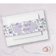 This is a pretty and feminine addition to your wedding stationary. Adorned with original artwork featuring stunning purple watercolor florals and romantic green foliage. Customise with your own monogram.