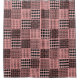 This shower curtain has a Boho design of squares with patterns in each in black and pink.