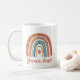 Sip your coffee in style with this vibrant boho rainbow mug. Featuring stunning floral and rainbow illustrations, this mug is sure to brighten your day. Personalise it with a name, inspirational quote, or special message to make it uniquely yours. This high-quality ceramic mug is built to last and is microwave and dishwasher-safe.