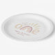 This boho rainbow and sunshine 1st birthday paper plate is perfect for a spring or summer birthday party. The simple monochrome rainbow and sun rays is delicate and sweet for your little one. Simply customise this plate for an adorable and summery birthday accent!