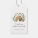 Boho Rainbow Baby Gift Tags. Introducing our enchanting Boho Rainbow Baby Shower Collection, where whimsical hand-painted watercolor rainbows in earthy tones of sage green, terracotta, and tan dance alongside trendy eucalyptus botanicals on a serene beige backdrop, with a complementary pattern on the reverse in deep sage. Embracing a rustic, bohemian chic aesthetic, this collection encompasses everything you need for a memorable celebration, from exquisite invitations and enclosure cards to a charming welcome sign, delightful gift tags, favour bags, and even coordinating paper plates, cups, and napkins. Let this collection set the stage for a joyous and stylish gathering to celebrate the impending arrival of your little one.