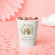Boho Rainbow Baby Paper Cups. Introducing our enchanting Boho Rainbow Baby Shower Collection, where whimsical hand-painted watercolor rainbows in earthy tones of sage green, terracotta, and tan dance alongside trendy eucalyptus botanicals on a serene beige backdrop, with a complementary pattern on the reverse in deep sage. Embracing a rustic, bohemian chic aesthetic, this collection encompasses everything you need for a memorable celebration, from exquisite invitations and enclosure cards to a charming welcome sign, delightful gift tags, favour bags, and even coordinating paper plates, cups, and napkins. Let this collection set the stage for a joyous and stylish gathering to celebrate the impending arrival of your little one.