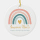 This adorable boho rainbow ornament is perfect for commemorating baby's first Christmas. The design features colours in muted tones of pink, blue, and gold. Personalised the ornament with your choice of text, font, and font colours.
