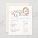 Keep guests entertained with this boho rainbow baby shower game sheet! Featuring a soft watercolor rainbow in warm, earthy tones, this beautifully designed game card is perfect for gender-neutral or boho-themed baby showers. A fun and coordinated way to engage your guests while celebrating the parents-to-be.