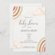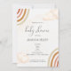 The modern minimalist layout paired with a warm earthy palette creates a stylish and gender-neutral look perfect for any baby shower theme.