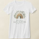 Boho Rainbow Baby Shower T-Shirt. Introducing our enchanting Boho Rainbow Baby Shower Collection, where whimsical hand-painted watercolor rainbows in earthy tones of sage green, terracotta, and tan dance alongside trendy eucalyptus botanicals on a serene beige backdrop, with a complementary pattern on the reverse in deep sage. Embracing a rustic, bohemian chic aesthetic, this collection encompasses everything you need for a memorable celebration, from exquisite invitations and enclosure cards to a charming welcome sign, delightful gift tags, favour bags, and even coordinating paper plates, cups, and napkins. Let this collection set the stage for a joyous and stylish gathering to celebrate the impending arrival of your little one.