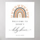 Earthy Bohemian illustrated rainbow, Baby shower welcome poster. Elegant typography design style template.