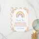 This cute and whimsical baby shower thank you card features a boho rainbow, confetti and floral arrangements with pampas grass in beige, blue and brown neutral tones. The text combines handwritten script and sans serif fonts for a stylish and modern look. This is perfect for a spring or summer baby shower.