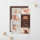 This cute and whimsical baby announcement card features a bohemian rainbow in brown and orange with white hearts on a dark brown background. The text combines handwritten script and serif fonts for a stylish and modern look. It can be personalised with your baby's birth stats, such as name, size, date and time of birth and you are able to change the template photos to your own.