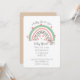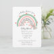 A sweet illustration of a boho rainbow and bunny holding flowers.