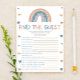 This is a boho rainbow themed Find The Guest Baby Shower Game.
