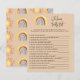 These adorable baby shower party feature trendy boho style and trendy handwritten script. Neutral cute painted watercolor rainbow. Matching games available.
