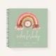 Boho Rainbow Lion Sage Green Baby Shower Guest Book. Perfect for your Guests to write their wishes for your upcoming new arrival, this bohemian chic rainbow and lion design in shades of pink, yellow and cream, with an elegant script for the header. The text can be easily personalised. The text colours can be changed and also the background colours on each side via the edit further option.