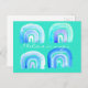 Cute colourful design of patterned rainbow in blue and aqua with a boho theme and I believe in magic quote Creative and arty against an aqua blue background. pattern collage art style.