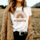 A fun boho rainbow mama shirt with earthy terracotta muted tones.