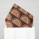 This cute and whimsical tissue paper features a beige, brown and orange bohemian rainbow on a dark brown background.