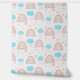 This is cute wallpaper featuring boho rainbow pattern with clouds, hearts ,stars and colorful raindrops designed in pastel pink and blue muted colors. Its cute wallpaper for baby nursery and kids room
