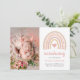 Photo Birth Announcement Card with a boho rainbow in muted pastel colours along with a pink heart in the middle. The header reads, "Introducing" in script and below are baby's name and birth stats. To the left is your favourite newborn picture. The backside has two horizontal pictures and your custom message. This cute birth announcement card is a great way to announce the arrival your newborn baby girl.