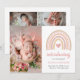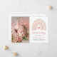 Boho Rainbow Pink Heart Photo Baby Girl Cute Birth Announcement