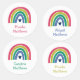This rainbow iron on clothing label features a sweetly coloured rainbow with heart in pink, lime, mustard, green and navy.