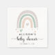 Cute modern boho baby shower napkins featuring an abstract watercolor of a sage green, orange and lavender rainbow with hearts and baby shower in a stylish script. Personalise with the mother-to-be's name and shower date.