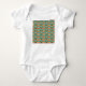 This baby bodysuit has a boho design of overlapping rainbows in boho colours of blue, green, yellow, and red.