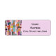 These address labels have a boho modern design of rectangles attached to vertical lines in various sizes and retro colours.
