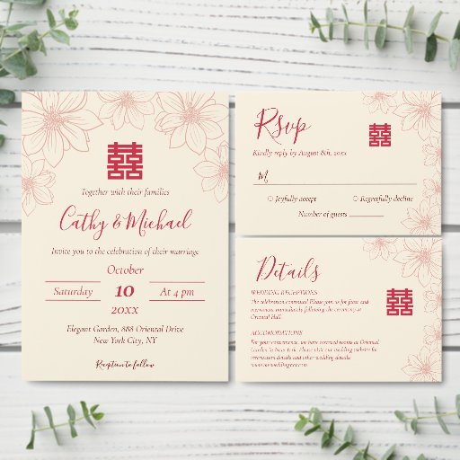 Vintage boho red beige floral Chinese weddingDesigned by Joc H