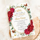 Personalise this boho chic red floral Quinceañera / Sweet 16 birthday invitation easily and quickly. Simply click the customise it further button to edit the texts, change fonts and fonts colours. Featuring exquisite watercolor red peony flowers, butterflies and a gold trimmed oval space to put all your important celebration details. Matching items available in store. (c) Somerset Fine Paperie