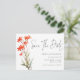 Boho Red Wildflowers QR Code Script Save The Date Postcard